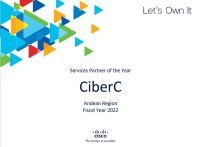 Cisco anunció que CiberC ha sido reconocido como el Service Partner of the Year para el periodo de agosto 2021 a julio 2022, demostrando un crecimiento en el negocio con Cisco, así como una alineación a los objetivos estratégicos propuestos para el crecimiento sostenible en el mercado.