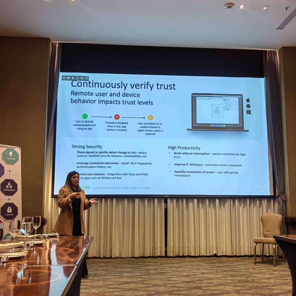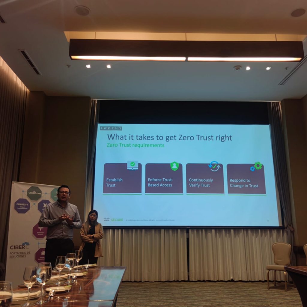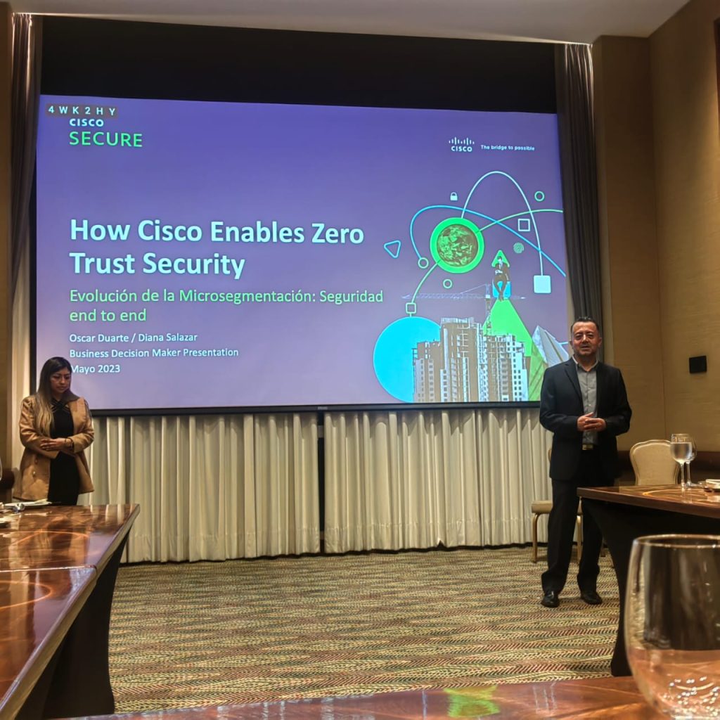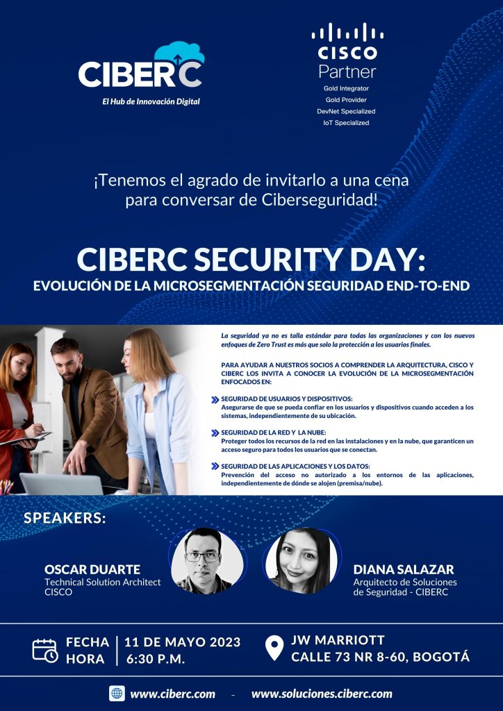 El pasado 11 de mayo, en el Hotel JW Marriot en Bogotá, se llevó a cabo el evento «CiberC Security Day», donde se exploró la importancia de la microsegmentación en la seguridad end-to-end y su total evolución. Oscar Duarte, Technical Solution Architect de Cisco, y Diana Salazar, Arquitecto de Soluciones de Seguridad de CIBERC fueron los encargados de la presentación de los conceptos enfocados en tres aspectos fundamentales: seguridad de usuarios y dispositivos, seguridad de red y la nube, y la seguridad de las aplicaciones y los datos.