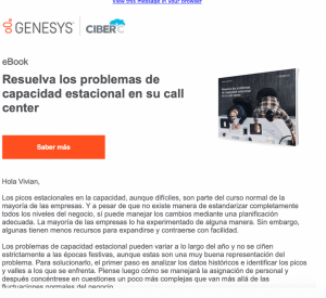 mprometidas con atender efectivamente las necesidades de sus clientes, Genesys y Ciberc presentan  a través de una campaña de emailing, la solución para atender los problemas de capacidad estacionales de los call centers en México.