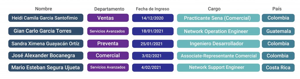 Le damos la bienvenida a los nuevos integrantes del equipo CiberC. Nos complace contar con su profesionalismo y capacidades para cumplir los objetivos de la compañía. Estamos seguro  que trabajando llevaremos nuestro negocio al siguiente nivel. Bienvenidos y muchos éxitos en su gestión.