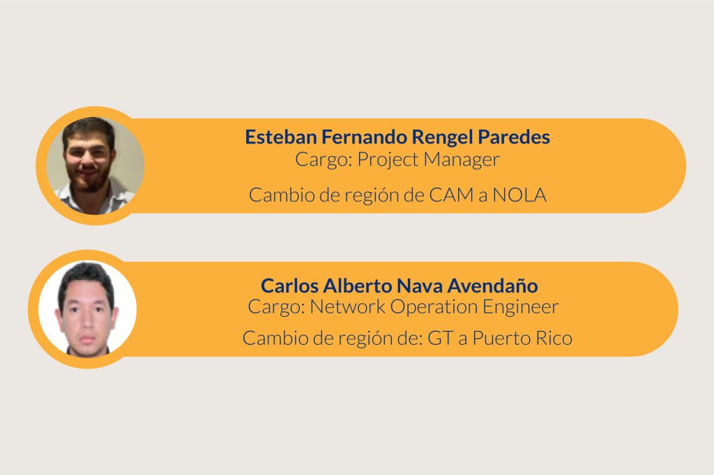 Estamos felices de anunciar que Carlos Nava y Esteban Rengel han cambiado su región geográfica para atender diferentes mercados. Esta es una oportunidad que brindamos en CiberC para que nuestro equipo de trabajo tenga la oportunidad de aprender y obtener experiencia de diferentes mercados.