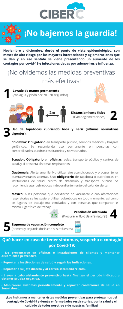 ¡Los invitamos a mantener estas medidas preventivas para protegernos del contagio de Covid-19 y demás enfermedades respiratorias, por la salud y el cuidado de todos nosotros y de nuestras familias!