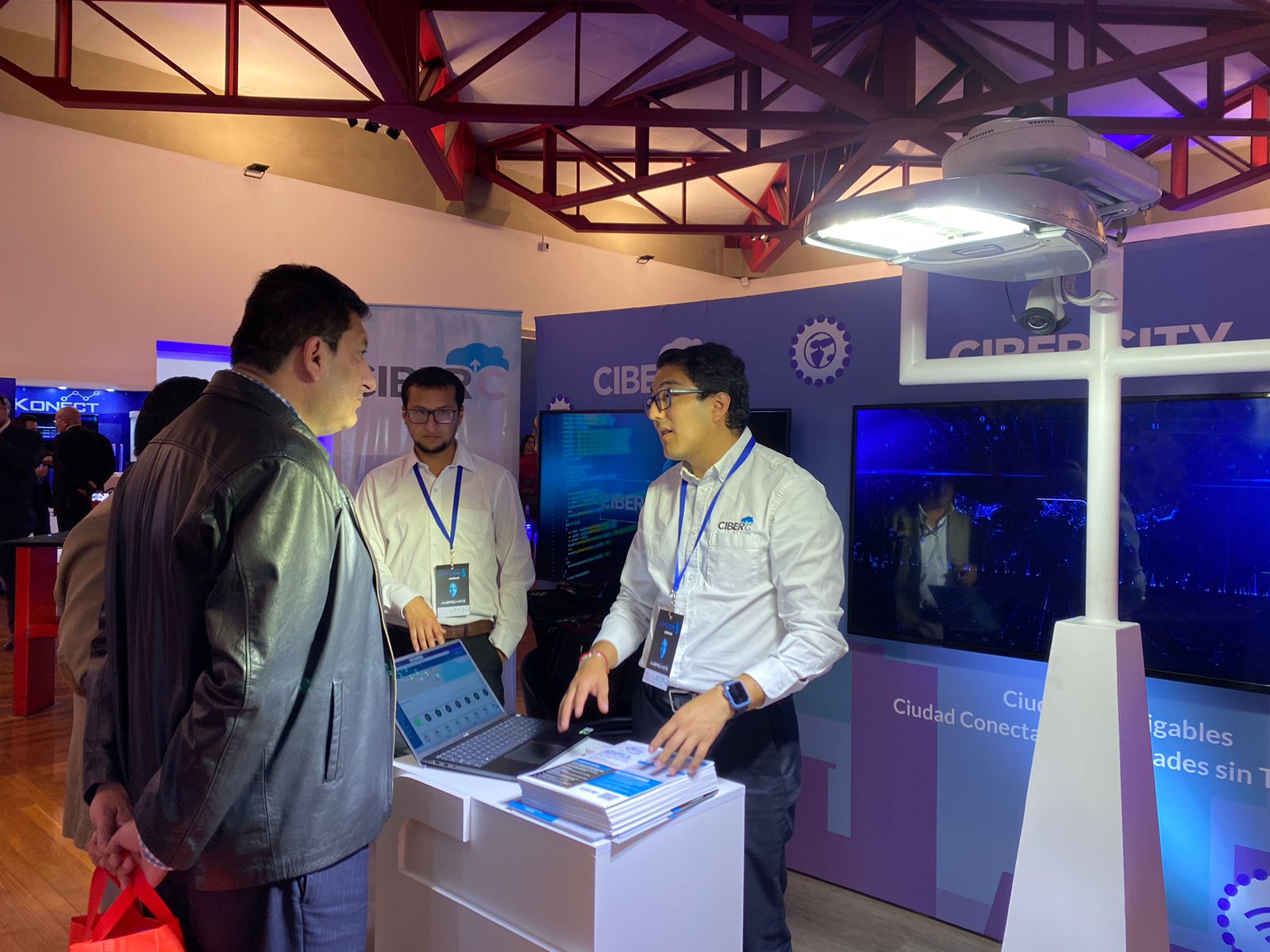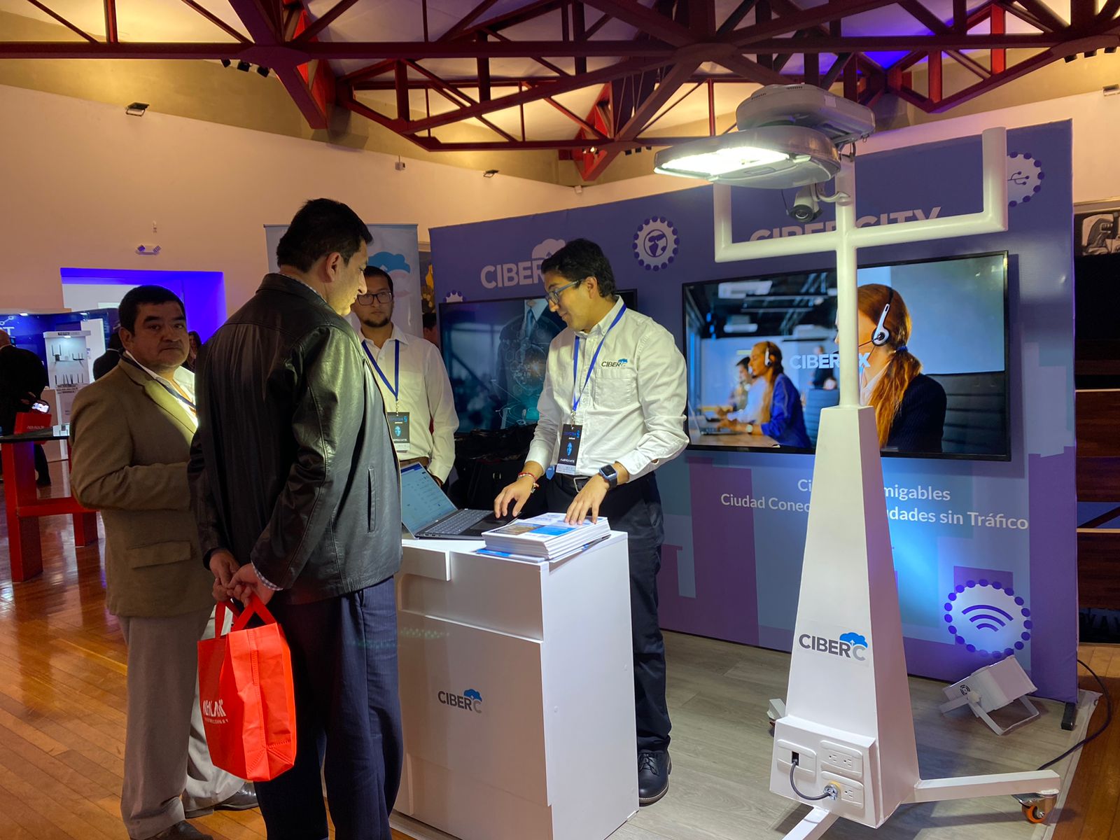 Se hicieron demostraciones en vivo de la plataforma de gestión en control de iluminación, esta vez con una integración de Genesys. Las demostraciones estuvieron a cargo de los ingenieros de preventa de CiberC, Miguel Maldonado y Luis Terán. Además, apoyando a nuestros ingenieros, formaron parte del equipo comercial Mérida Rodríguez, Alfredo Paredes y María José Arteaga. Apoyando todo el proyecto estuvo Alexandra Arias como PMO.
