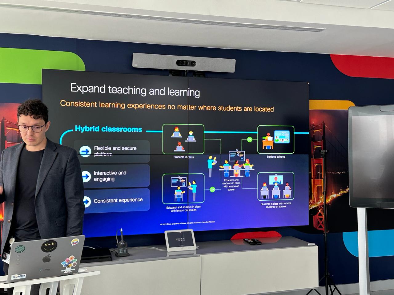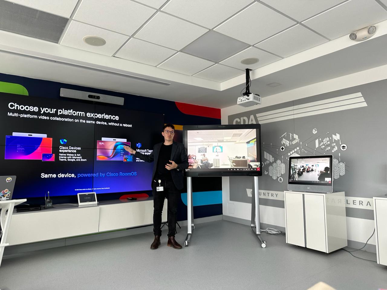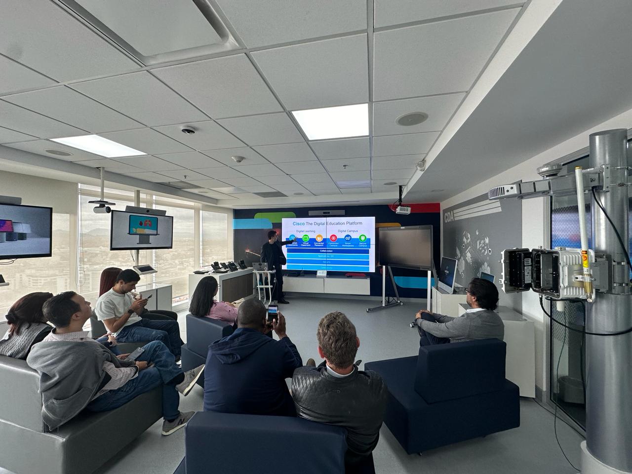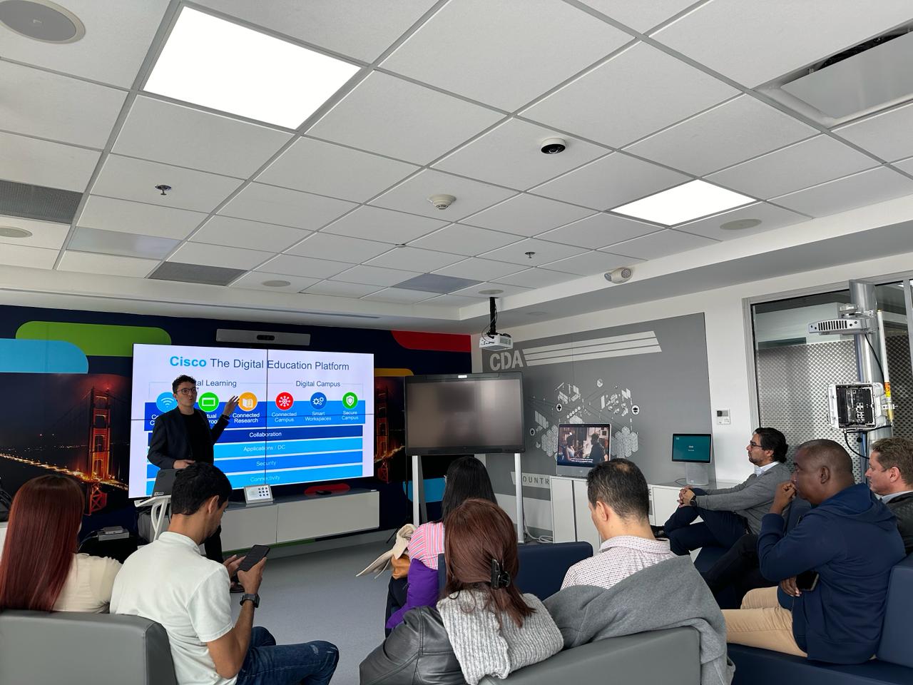 Con el propósito de consolidar y fortalecer las relaciones comerciales con la UNIAJC-Universidad Antonio José Camacho de Cali, así como de proporcionar una visión directa de las oportunidades en la transformación digital del sector educativo, CIBERC extendió una cordial invitación a representantes de la universidad. Este encuentro tuvo lugar el pasado 15 de febrero en el Advanced Technology Center de Colombia (ATC) de Cisco, donde los participantes tuvieron la oportunidad de explorar en detalle un completo portafolio de soluciones diseñadas para los nuevos modelos de aprendizaje.